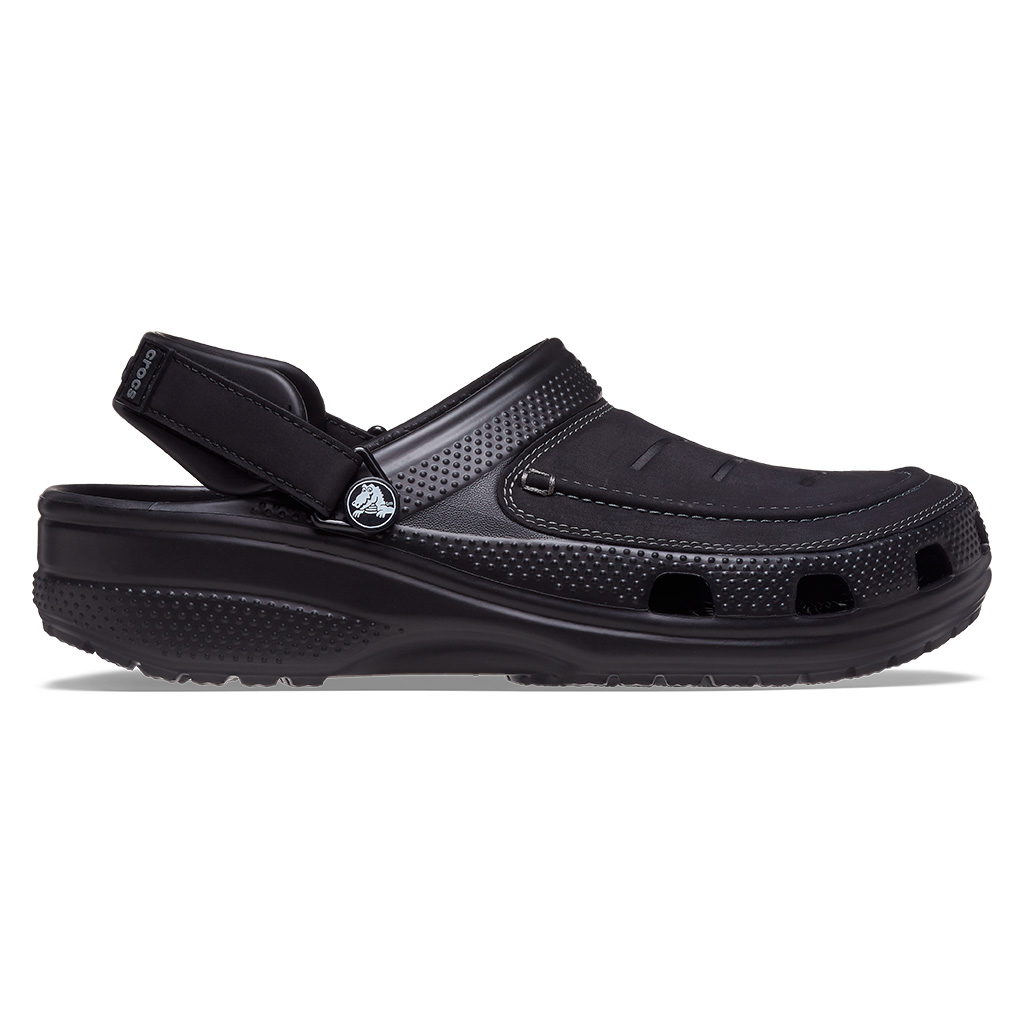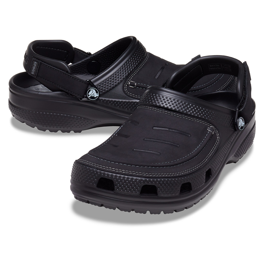 Los refuerzos de cuero genuino en la parte superior y las correas ajustables en el talón, añaden una dosis de fuerza a estos Clogs. Cuenta con un sistema de cierre de velcro que también gira hacia adelante. Sus suelas y plantillas de espuma Croslite ™ pueden soportar los elementos al aire libre, mientras brindan una verdadera comodidad alrededor de una fogata, en el camino o en casa.