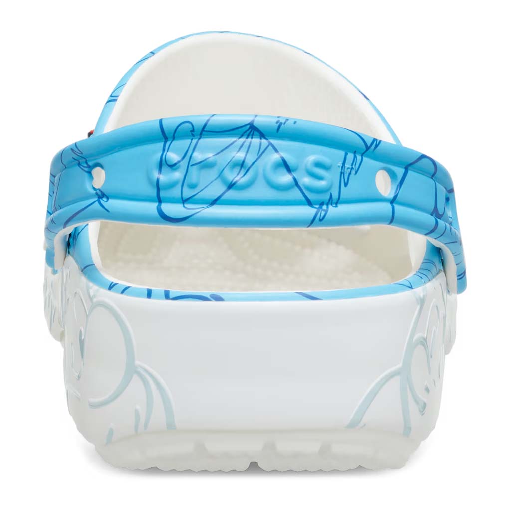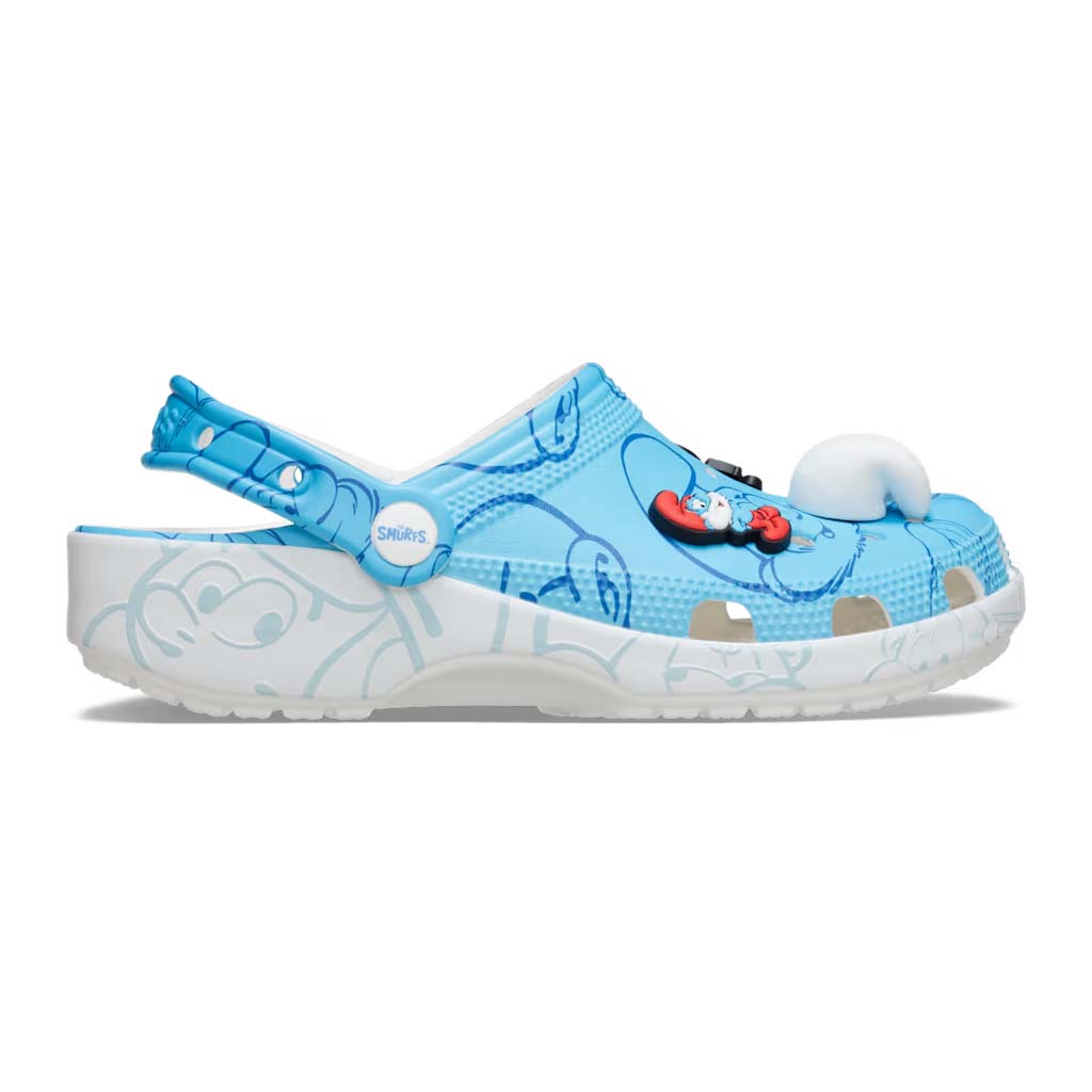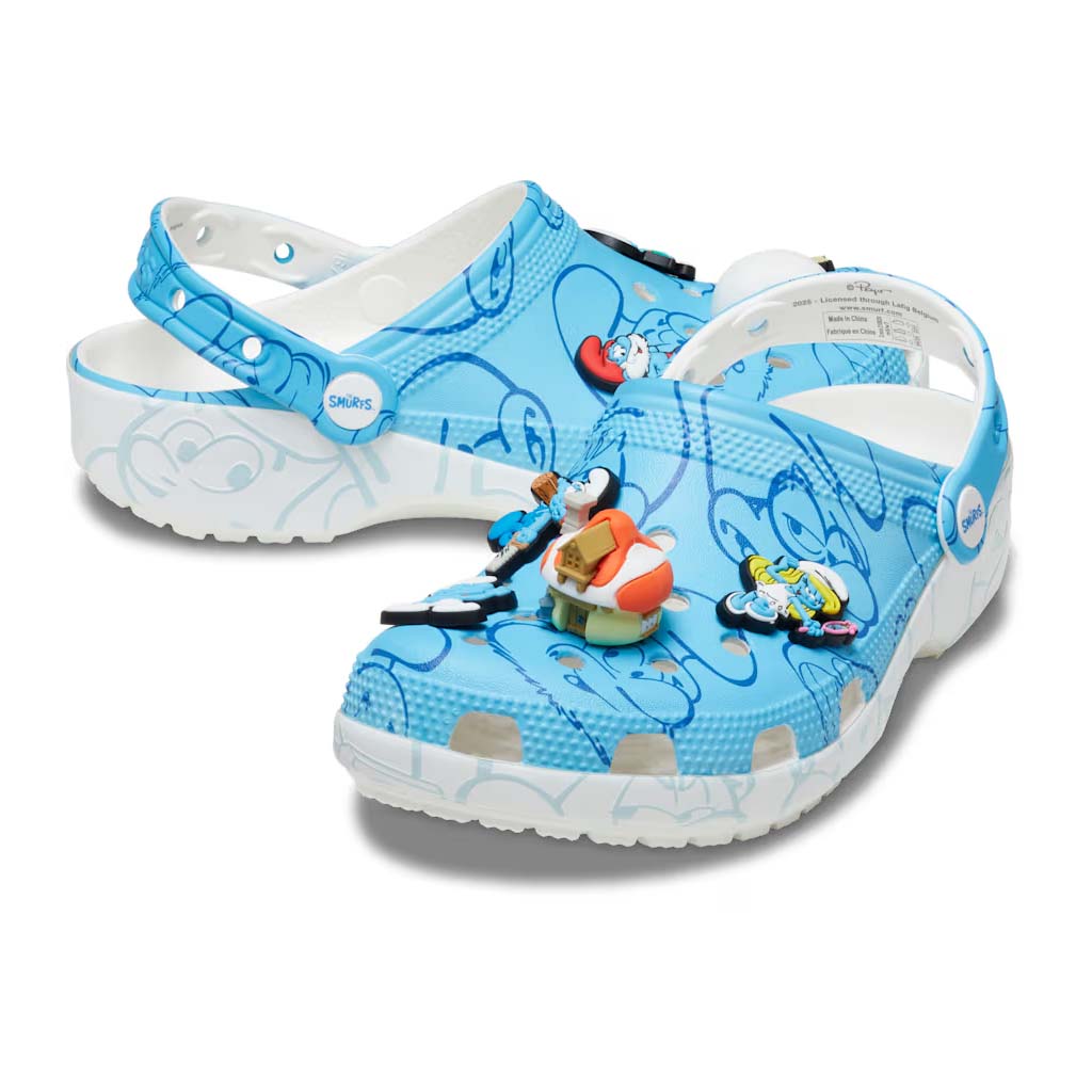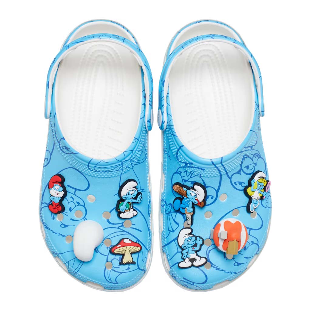 El Smurfs Classic Clog está lleno de encanto con un estampado completo de Los Pitufos sobre una parte superior en azul intenso. Además, viene con dijes Jibbitz™ exclusivos, incluyendo un gorro 3D, una casa-hongo y varios de tus personajes favoritos. ¡Un clásico lleno de magia azul!