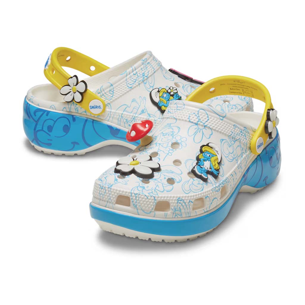Inspirados en la mejor amiga más azul y adorable, los Smurfs Platform Clog presentan un estampado completo de Pitufina y dijes Jibbitz™ exclusivos que los hacen absolutamente pitufo-encantadores.